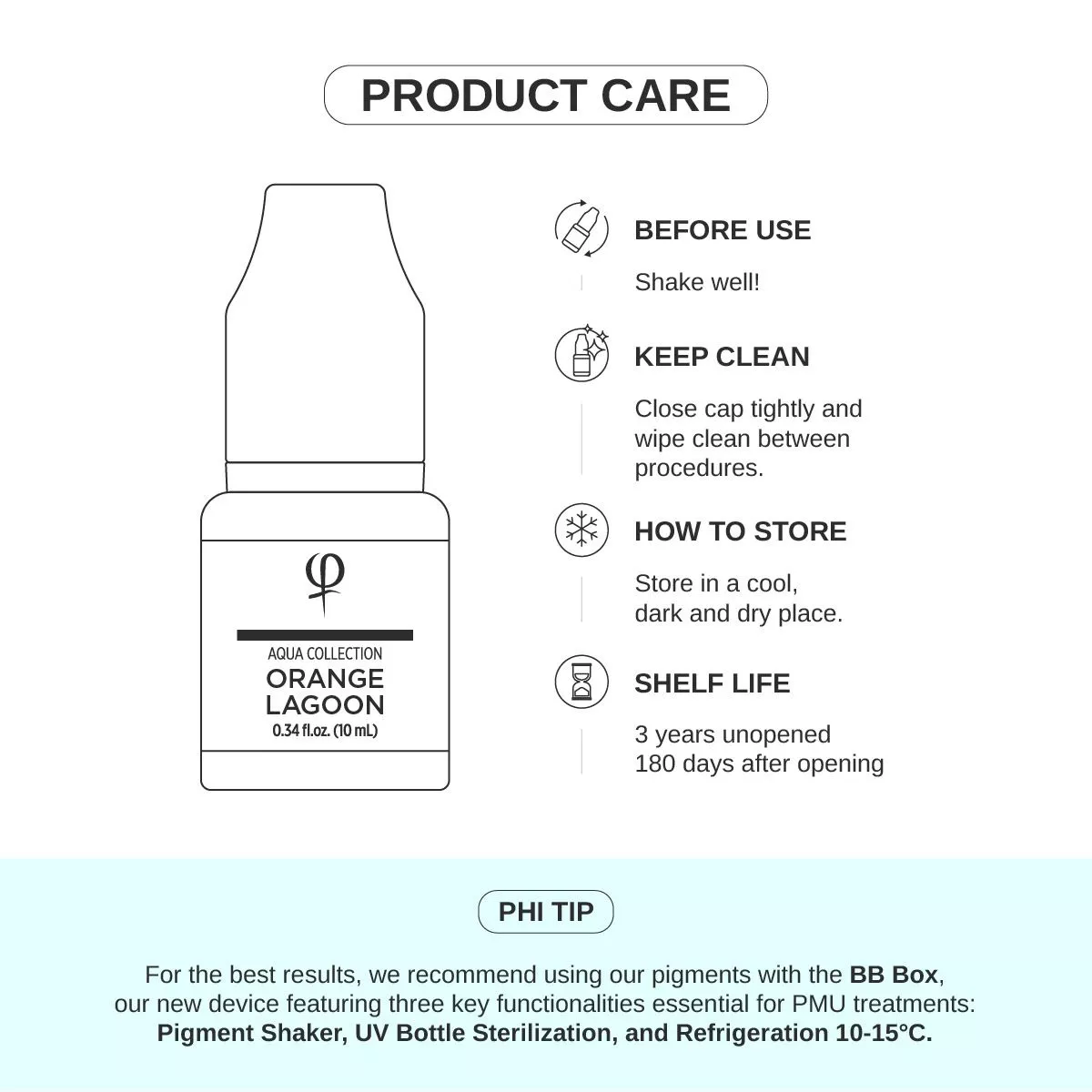PHI TIP: For best results, use with the BB Box, providing Pigment Shaker, UV Bottle Sterilization, and Refrigeration at 10-15°C below ambient temperature.